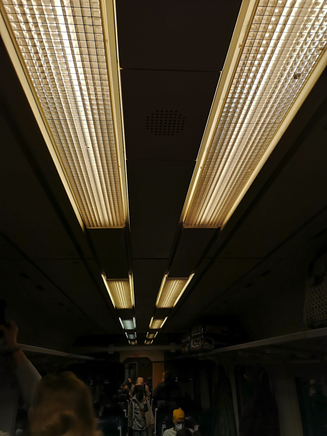 In the peaceful parts of Europe, trains travel through the night with their lights switched on.